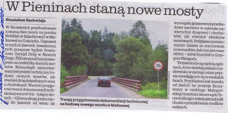 W Pieninach staną nowe mosty - Gazeta Krakowska, Na Podhalu (21 września 2011 r.)